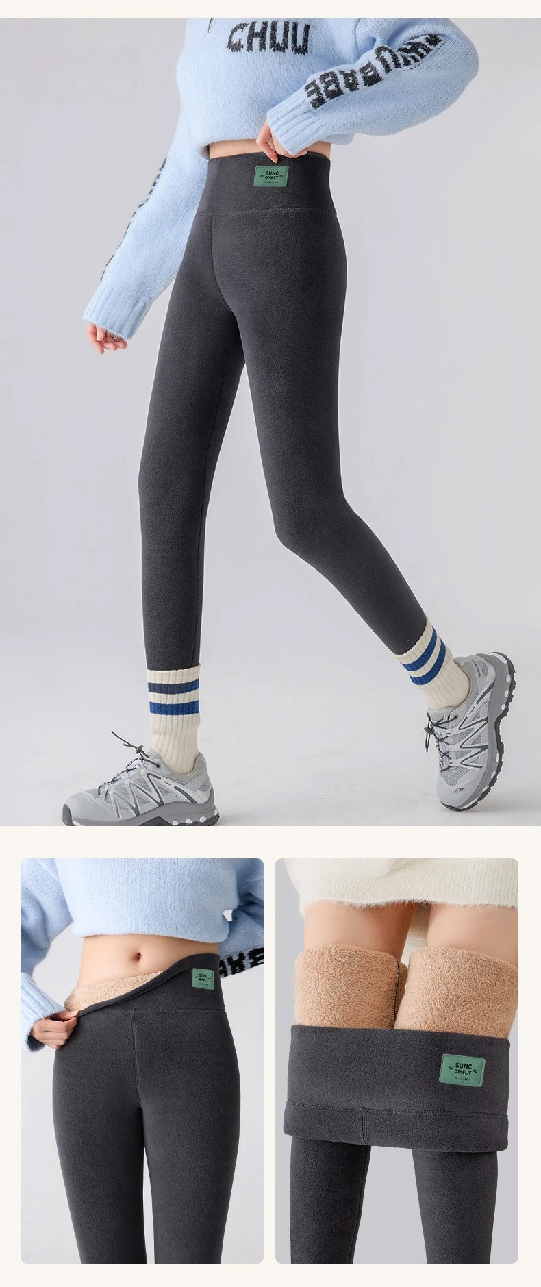 Plus Size Fleece Lined Leggings Women High Waisted Tights for Cold Winter Thermal Outdoor Wear Thick Ribbed Fashion Leggings