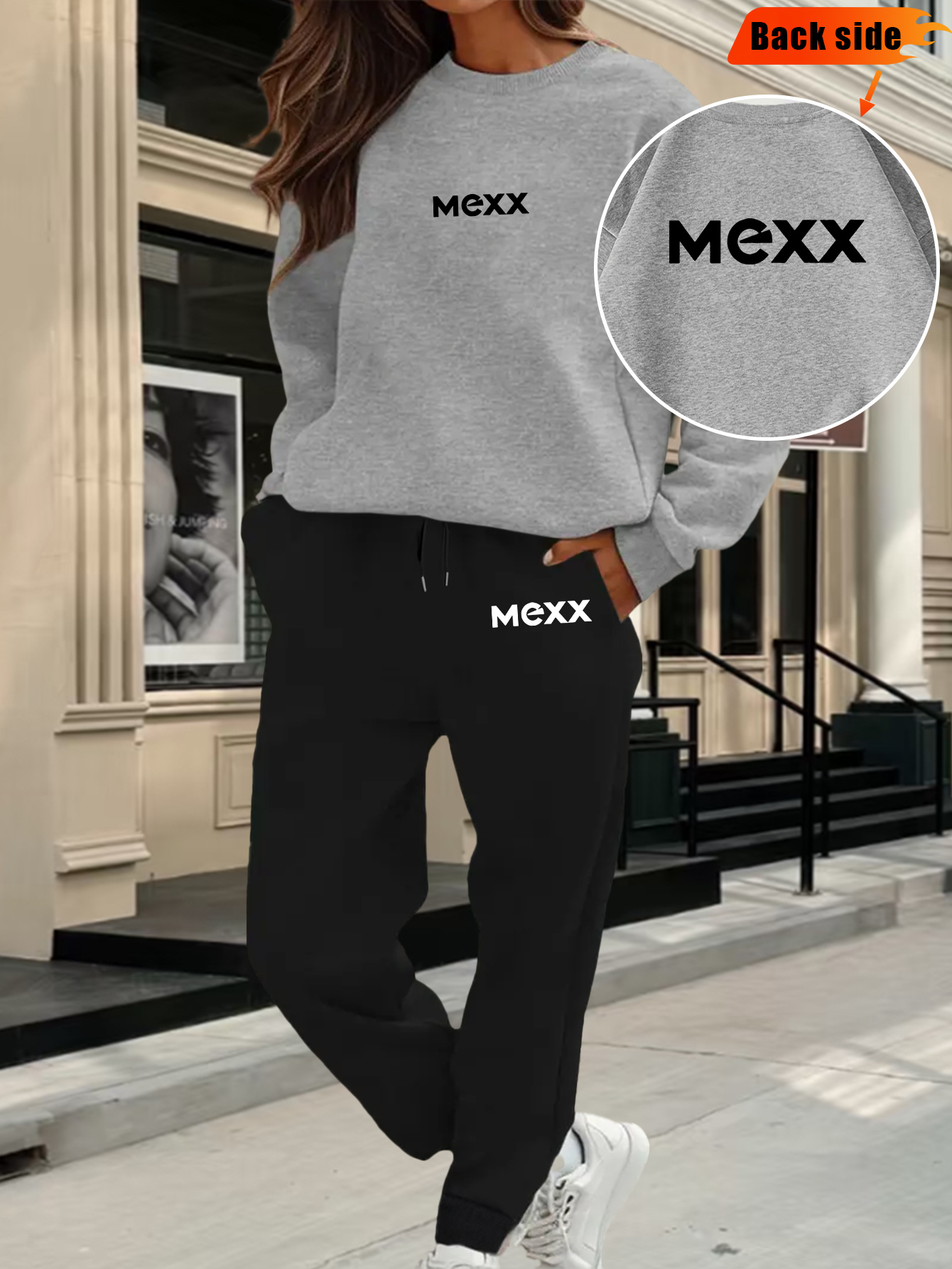 A Set of 2 Sets of Women'S Sports Crew Neck Sweatshirt And Trouser Set, MEXX Printed Pattern, Elegant Casual Sexy Style, Polyester Fabric Stretchy, Suitable for Spring, Summer, Autumn Daily Holiday Travel, Sports Fitness, Par